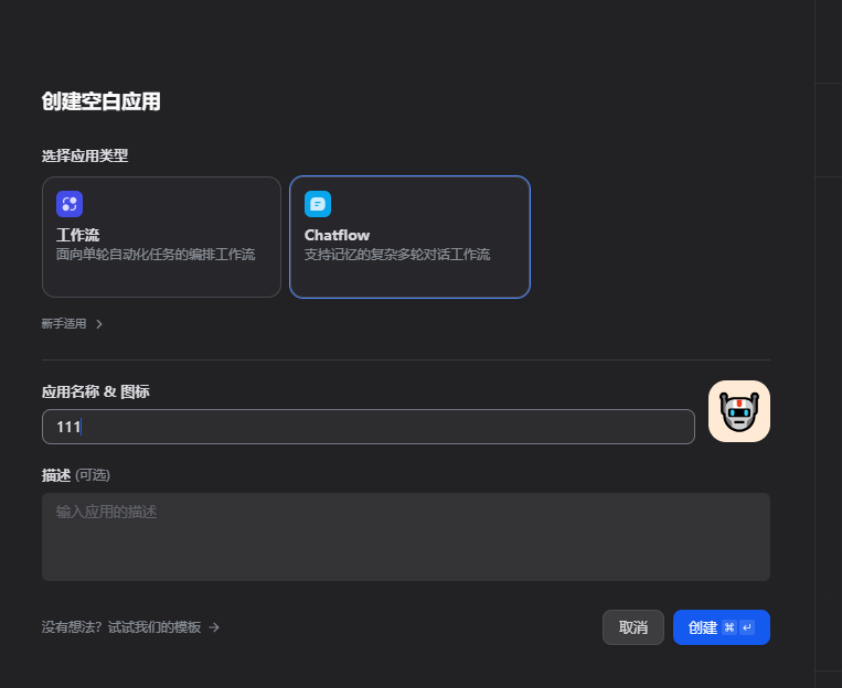5.2.3创建对话工作流>填写应用名称>点击创建