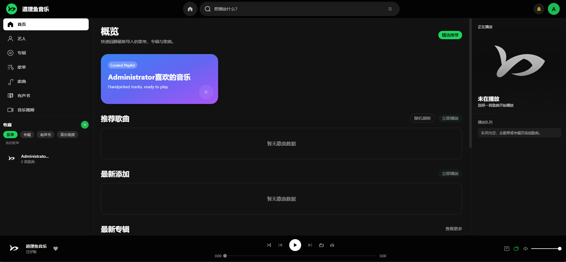 支持高码率音频(DTS/DSD/APE/WMA 等)、音乐视频、有声书。自动封面缩略图、边播边转,提供 PostgreSQL / SQLite 双版本镜像,轻量易用。